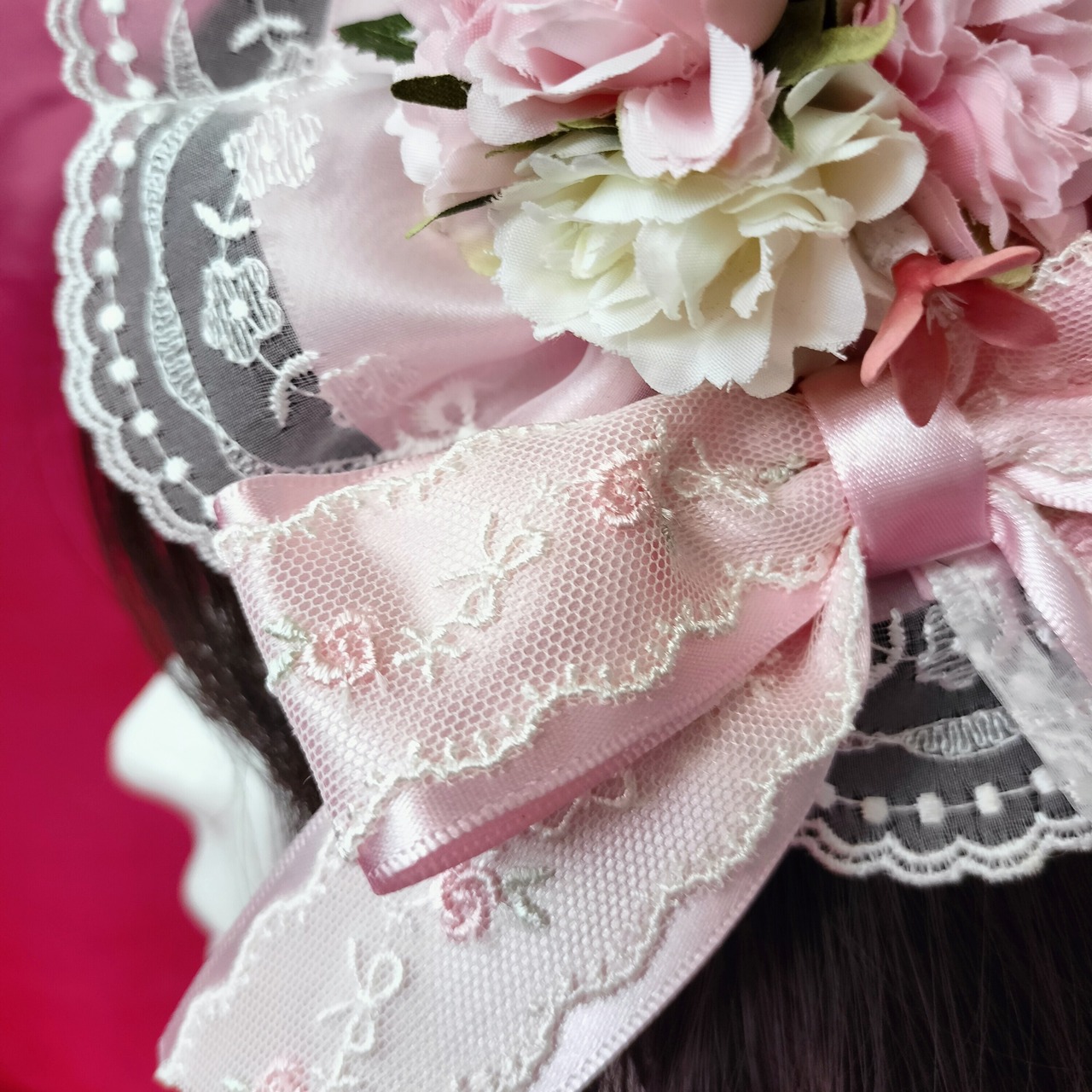 優しいピンクの薔薇と白薔薇、小花などを集めたヘッドドレス