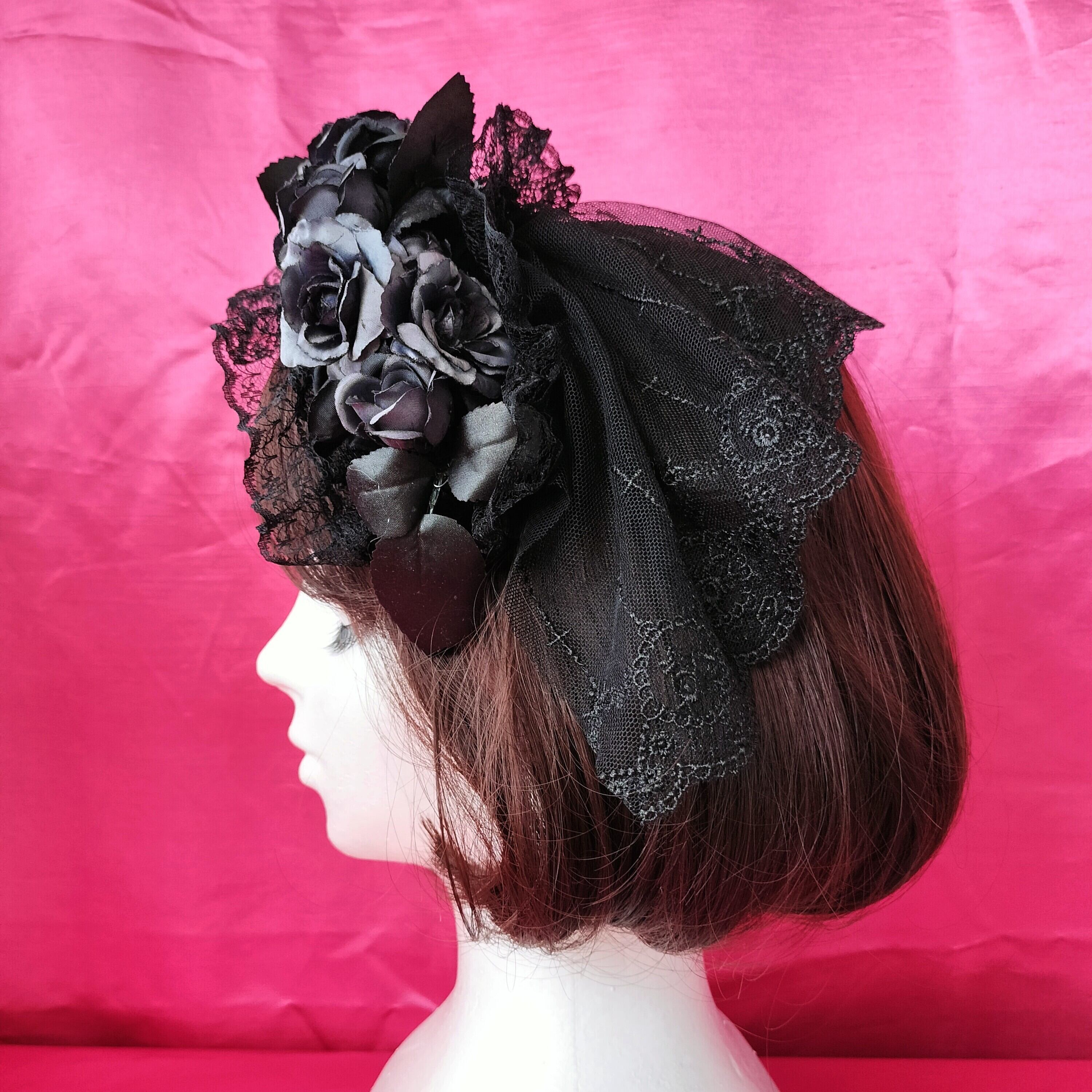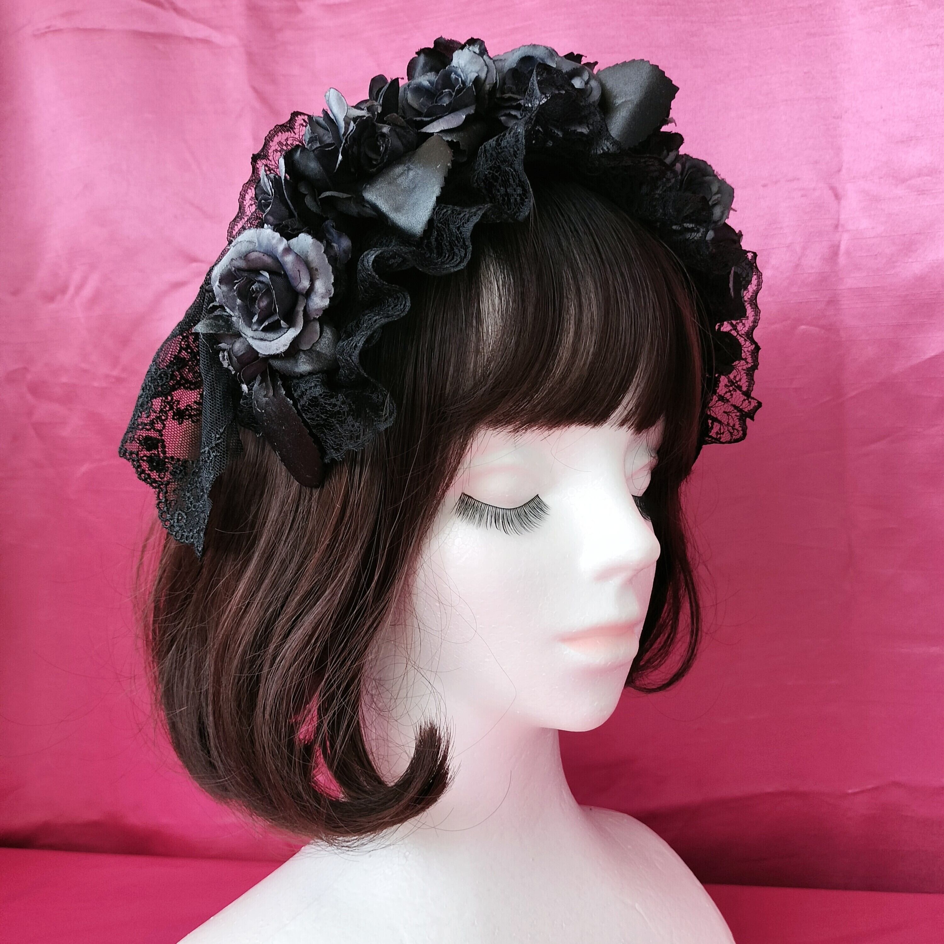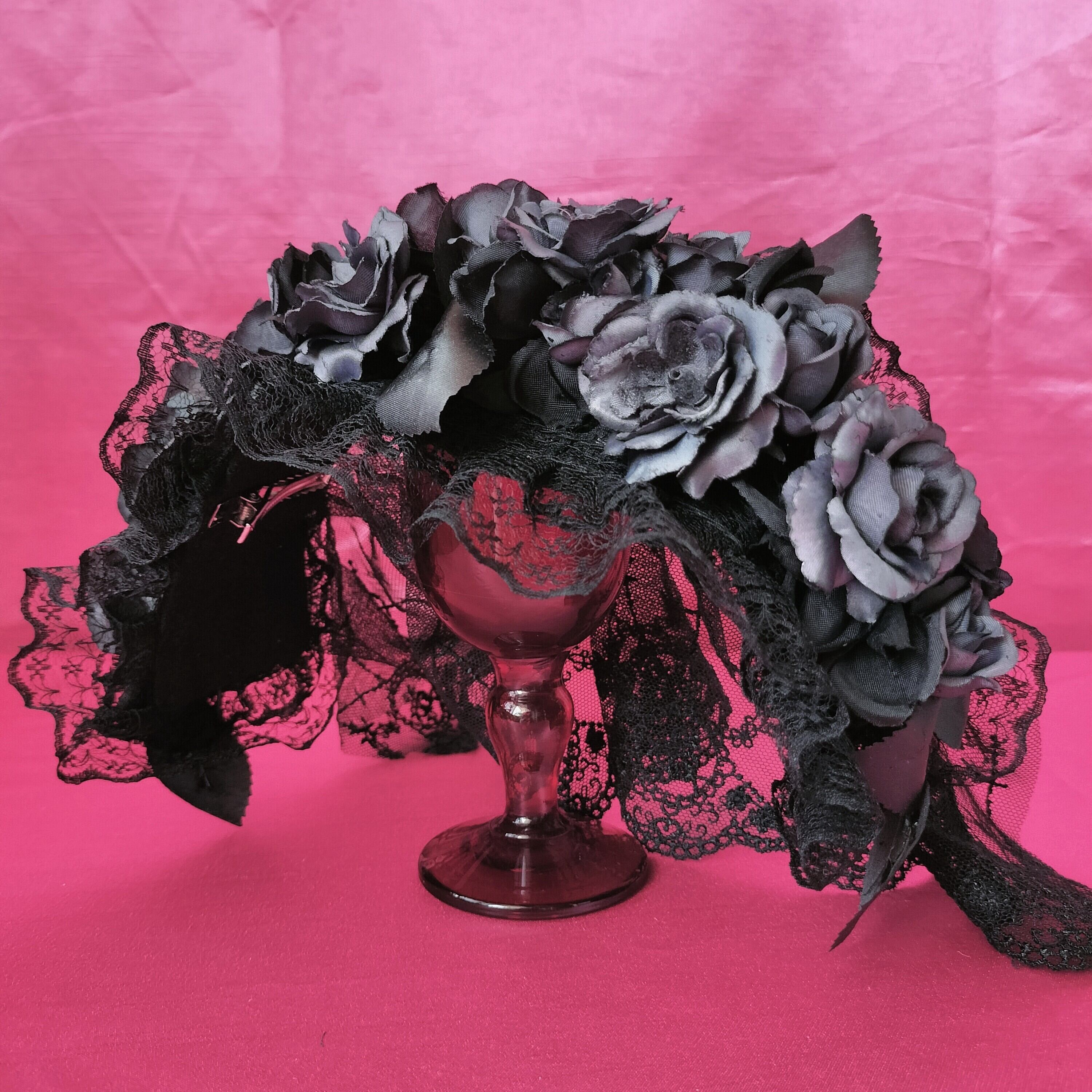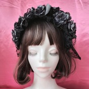 漆黒の黒薔薇を纏めたフラワーティアラ
