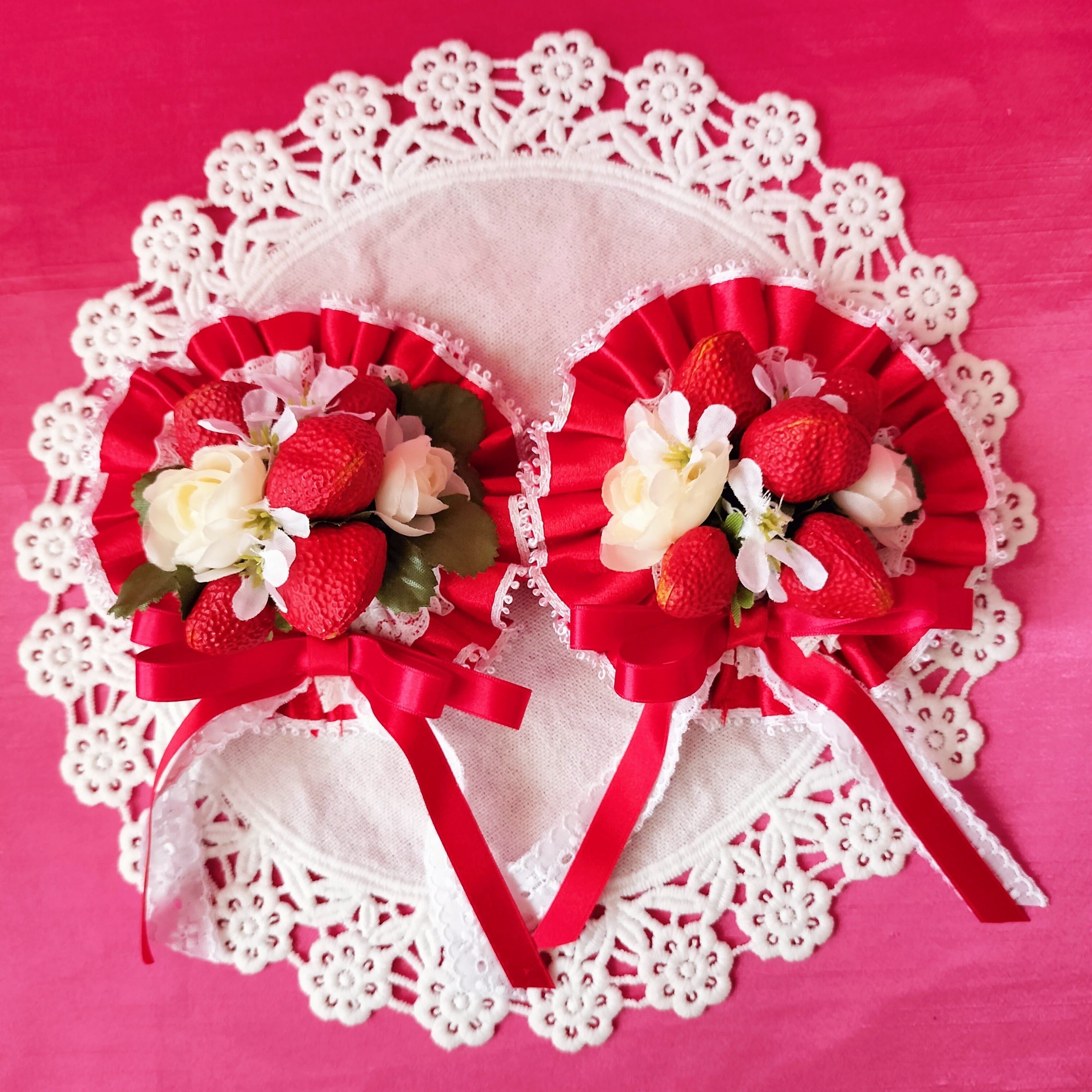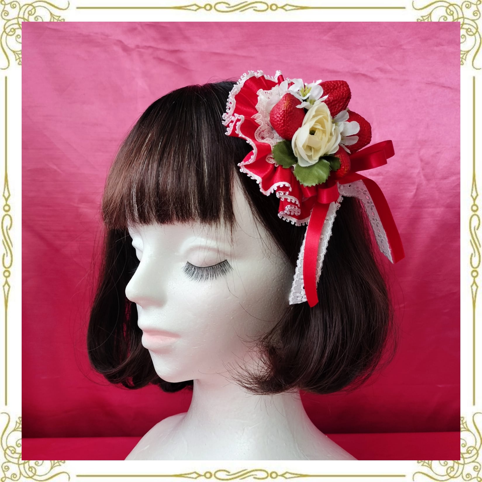 真っ赤ないちごと赤いフリルの可愛いヘッドドレス