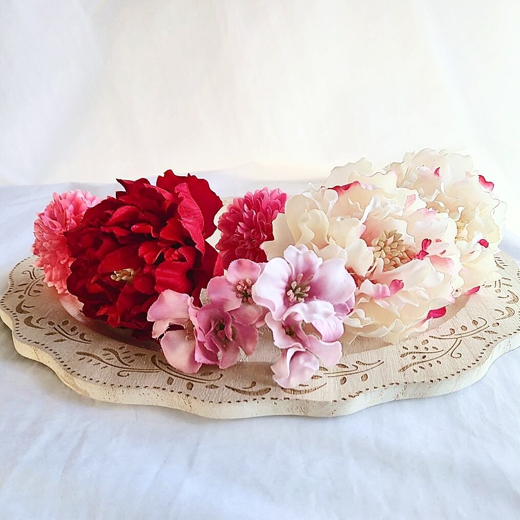 赤 白 ピンクでふんわりと優しい色味でお作りしております。