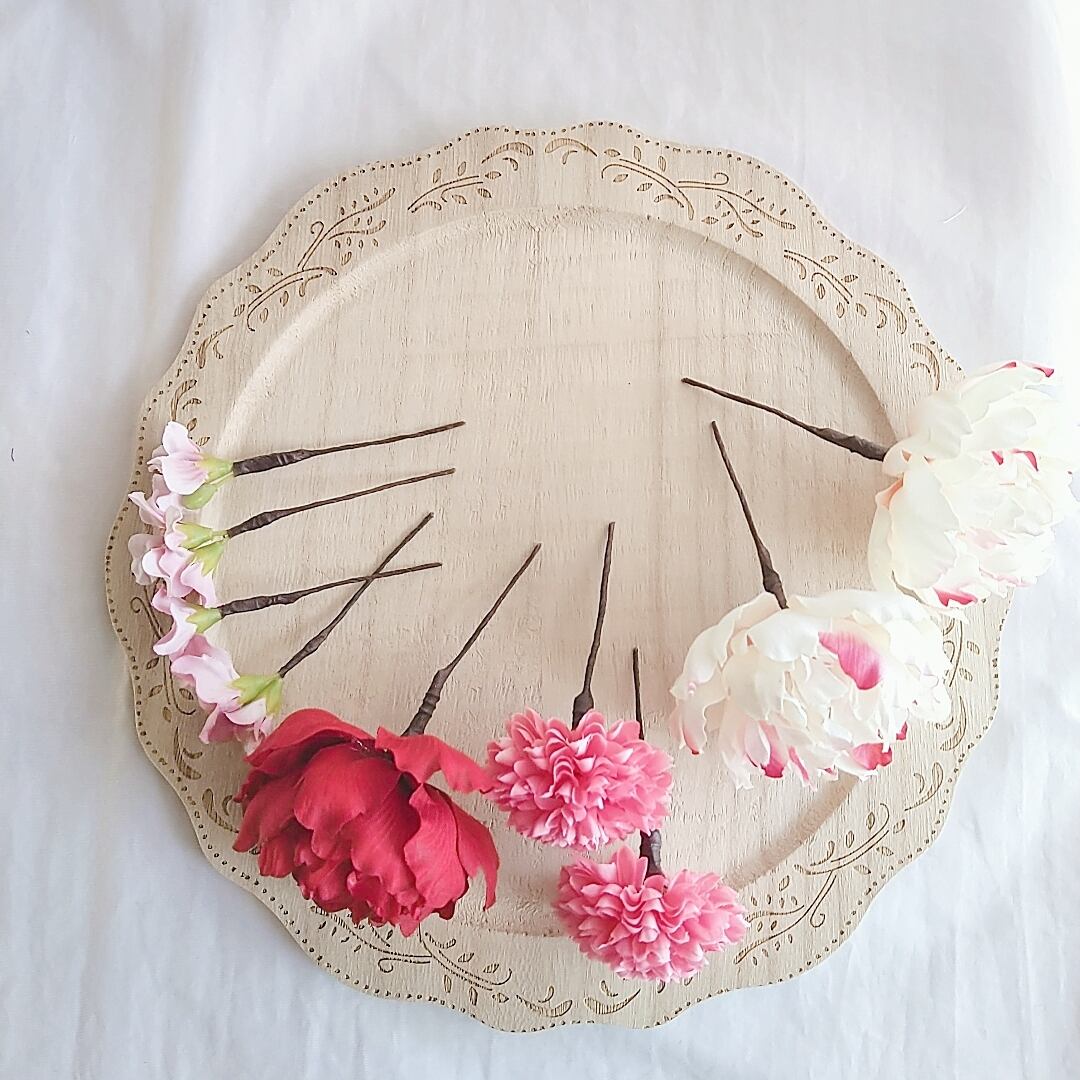 ワイヤーでしっかり固定してありますのでセットした髪にさしてご使用下さい。