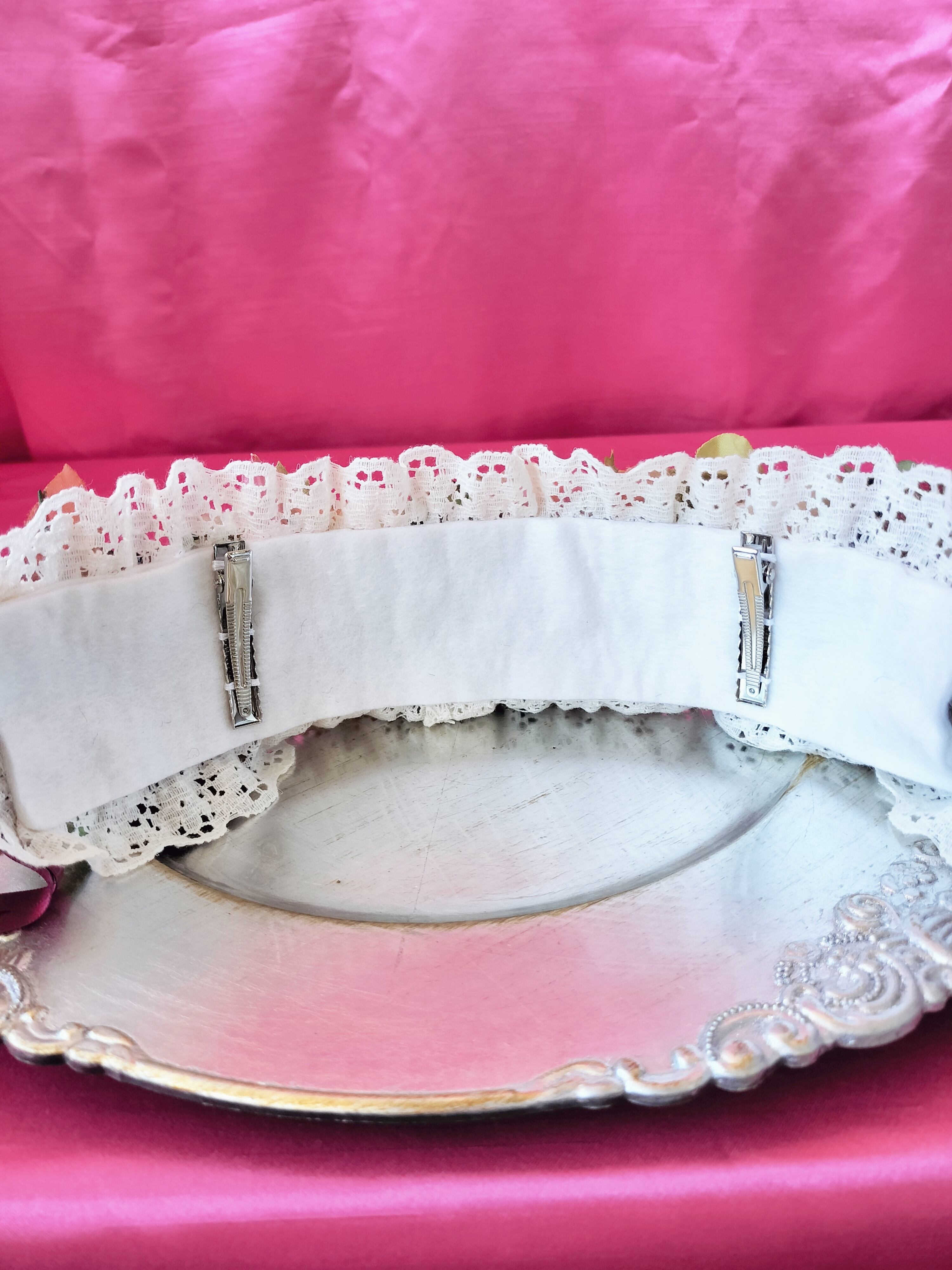 ヘッドドレスの裏側にクリップピンが2つついていますのでリボン無しでもお使い頂けます。