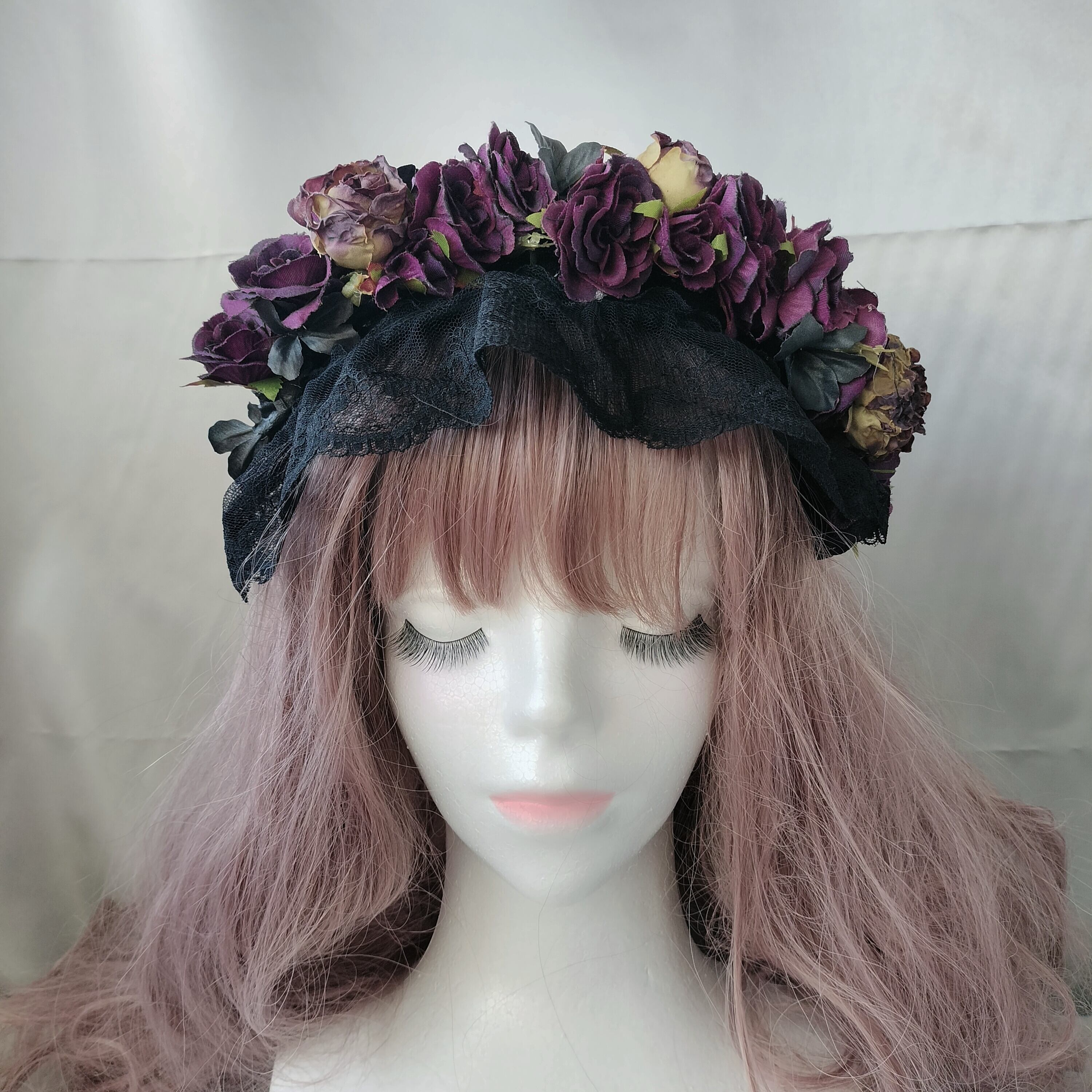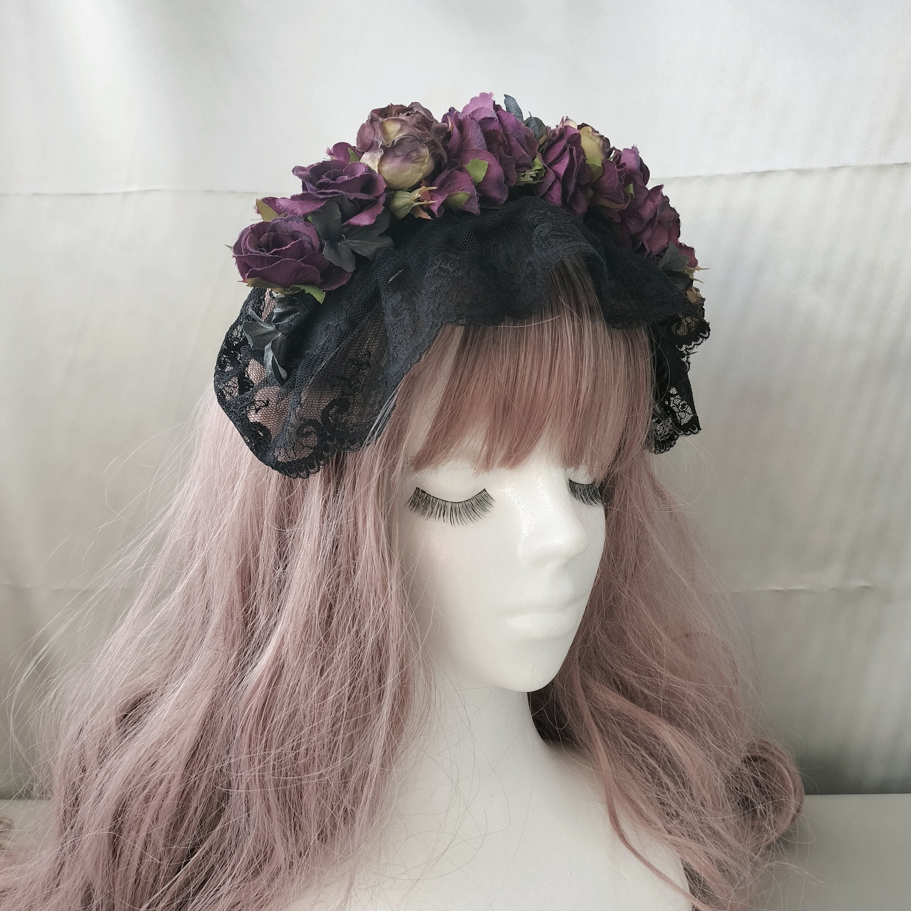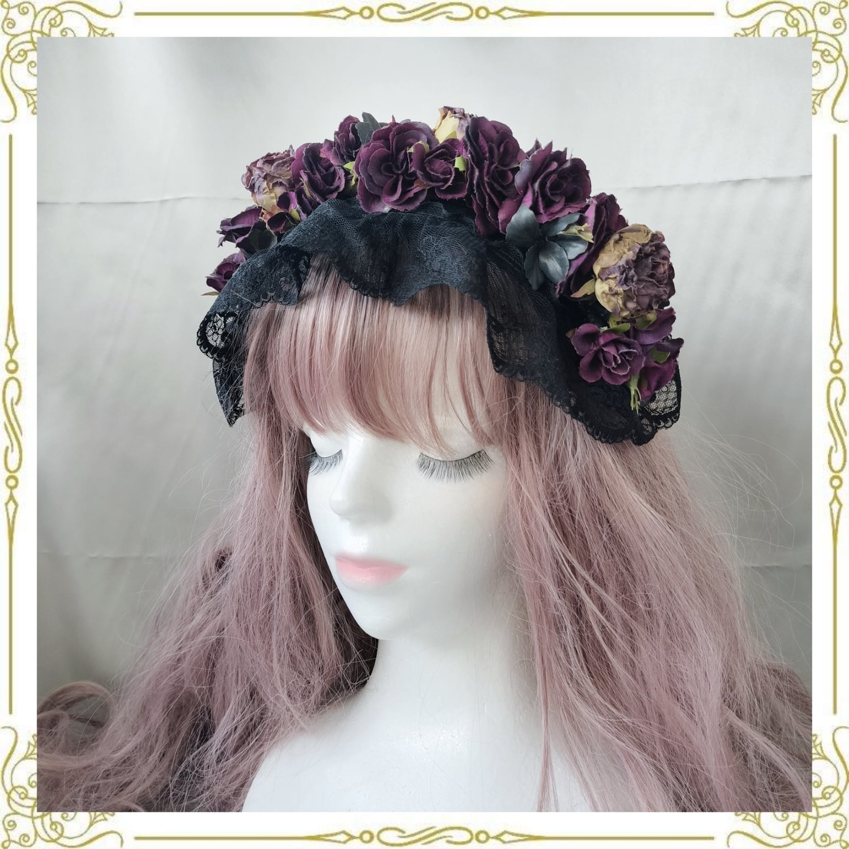2種類の紫の薔薇を纏めた優雅なヘッドドレス。