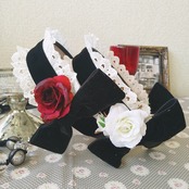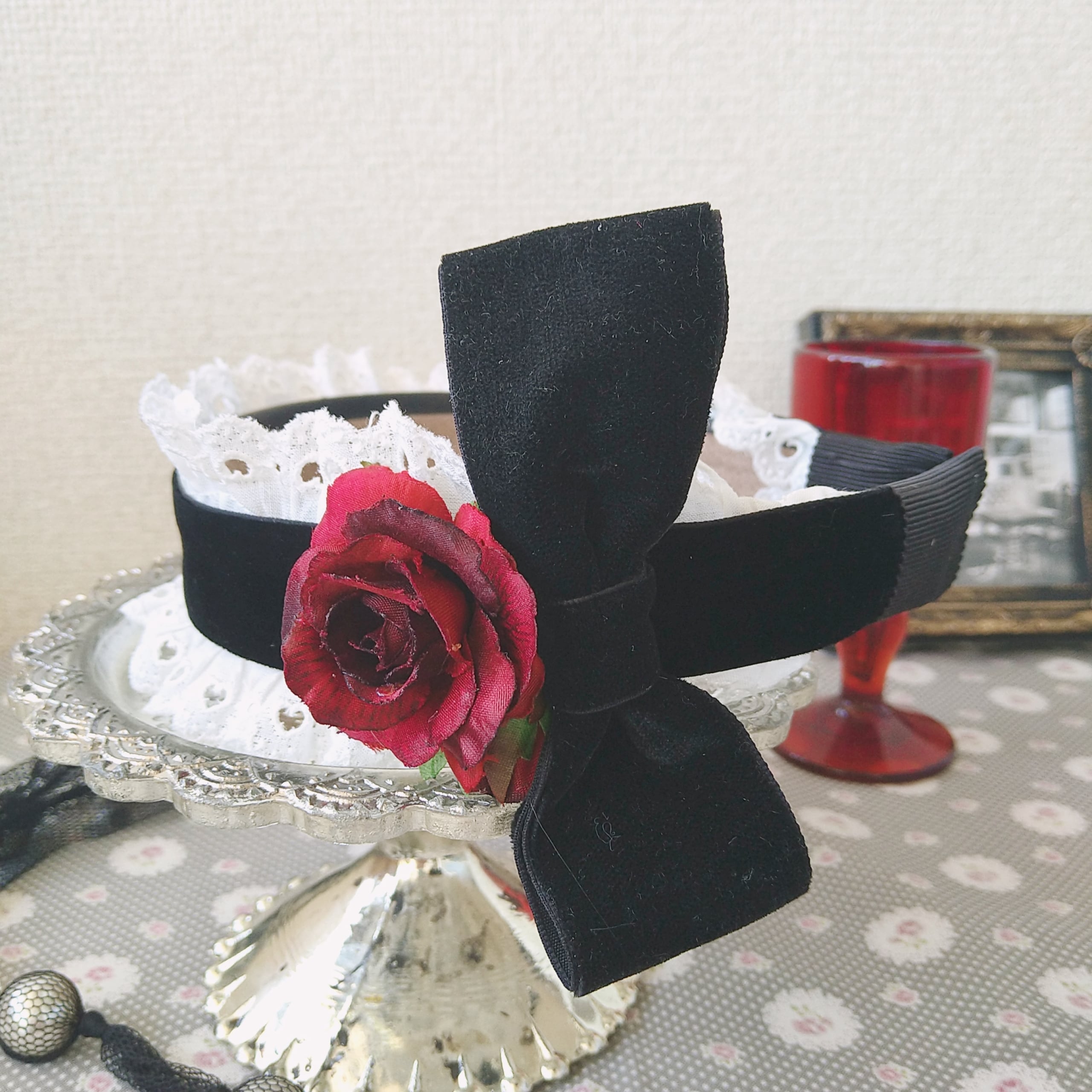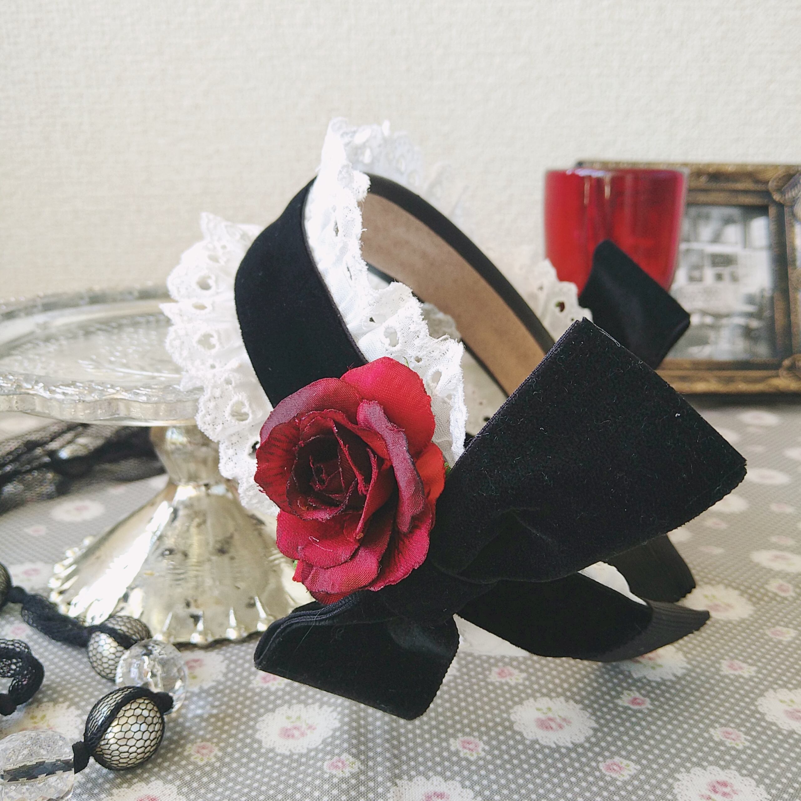 別珍のリボンと生成りのレースでクラシカルでどこか温かみのあるカチューシャに仕上がりました。