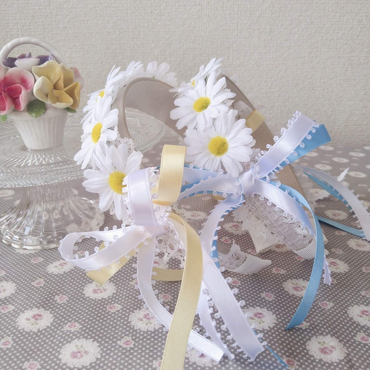 マーガレットをあしらった可憐なカチューシャサイドのリボンがポイントです。