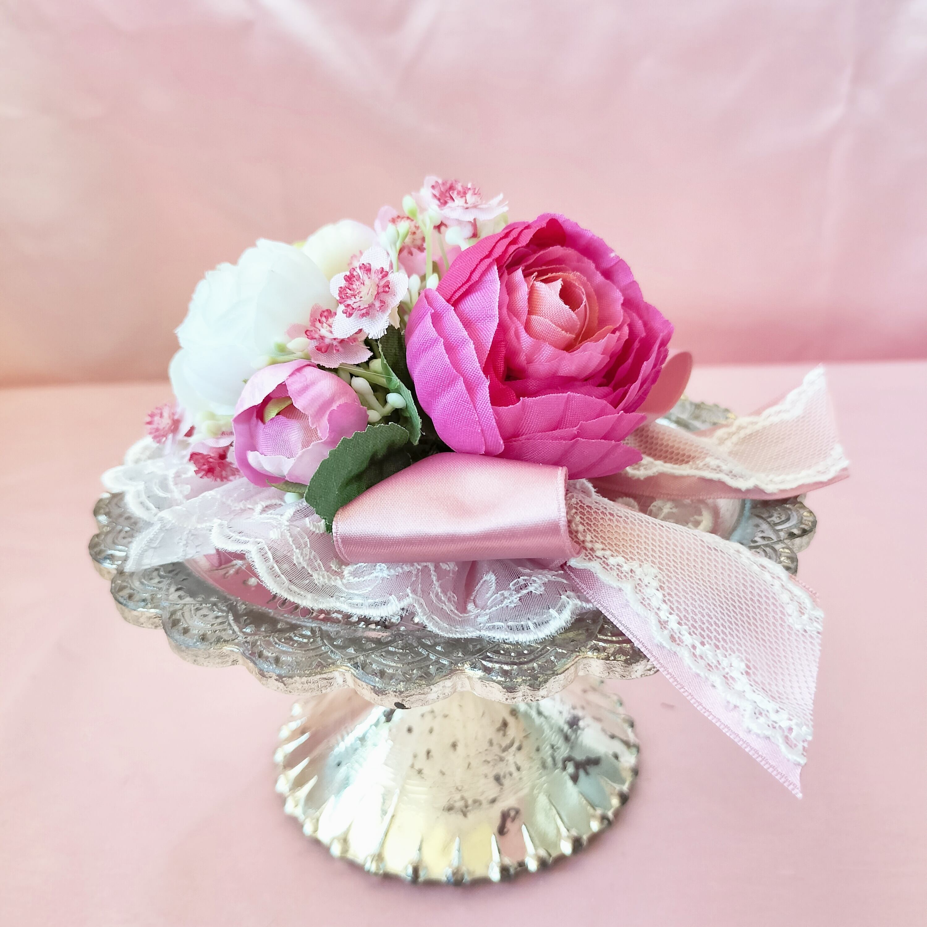 可愛いピンク薔薇とピンクのかすみ草を集めたヘッドドレス