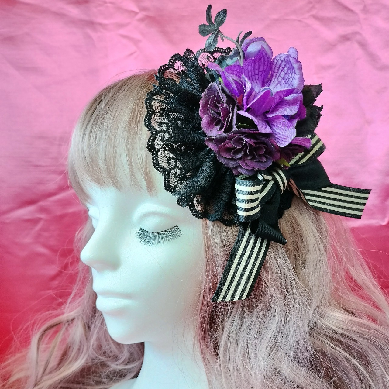 高貴なオーキッド(ラン)と薔薇を纏めたヘッドドレス