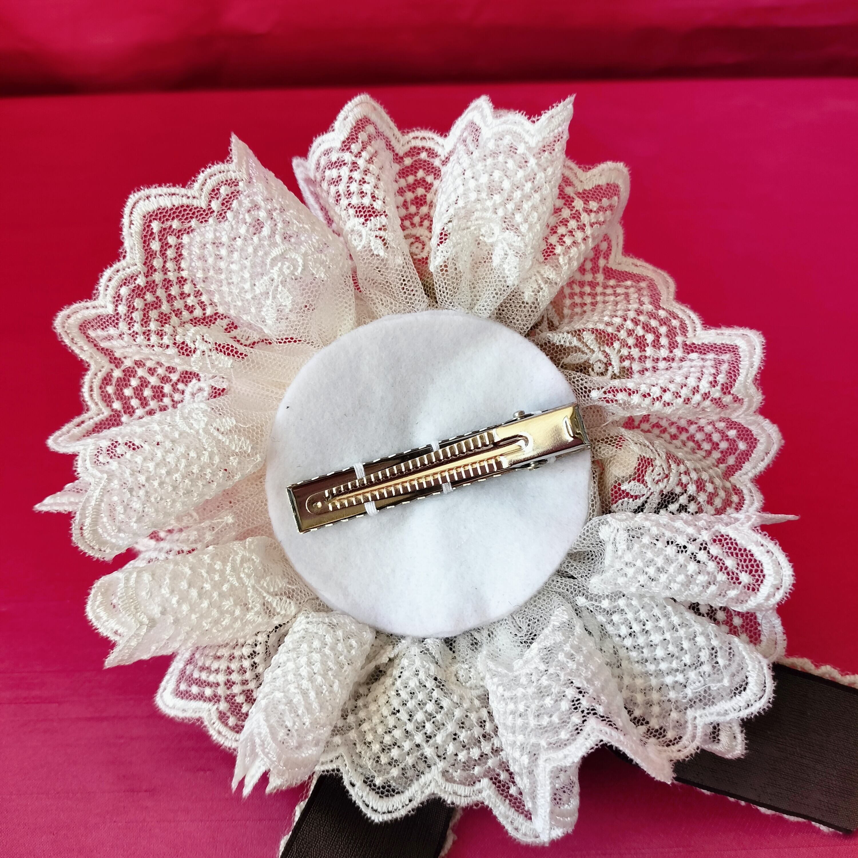 ブラウンのリボンもレースとのW使いでとってもクラシカルに仕上がりました。